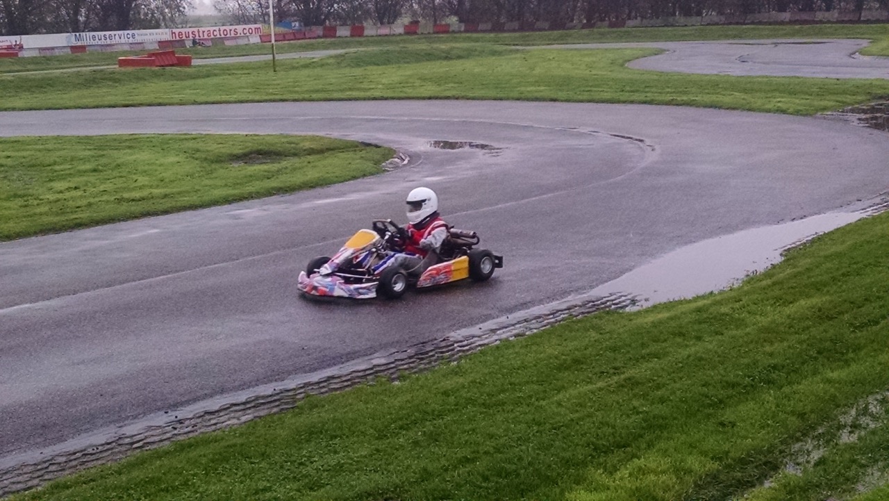 Vandaag vanaf één uur tot een uurtje of vijf weer de nodige rondes op een zeer natte baan gereden. De motor loopt weer stukken beter dankzij de hulp van Andreas en de ondersteuning van Henk. Christielle heeft voor het eerst (en we hopen voor het laatst) 80 graden tegen een stootblok aangehangen. De motor liep nog, mevrouw zat lekker in haar stoel en vond het wel een belevenis om dit ook eens mee te maken. Uiteraard waren papa en mama iets minder blij met deze belevenis. Al met al was het weer een leerzame dag, regenrijden is toch wel weer heel anders als een baan in het zonnetje. Morgen de eerste cursusdag!